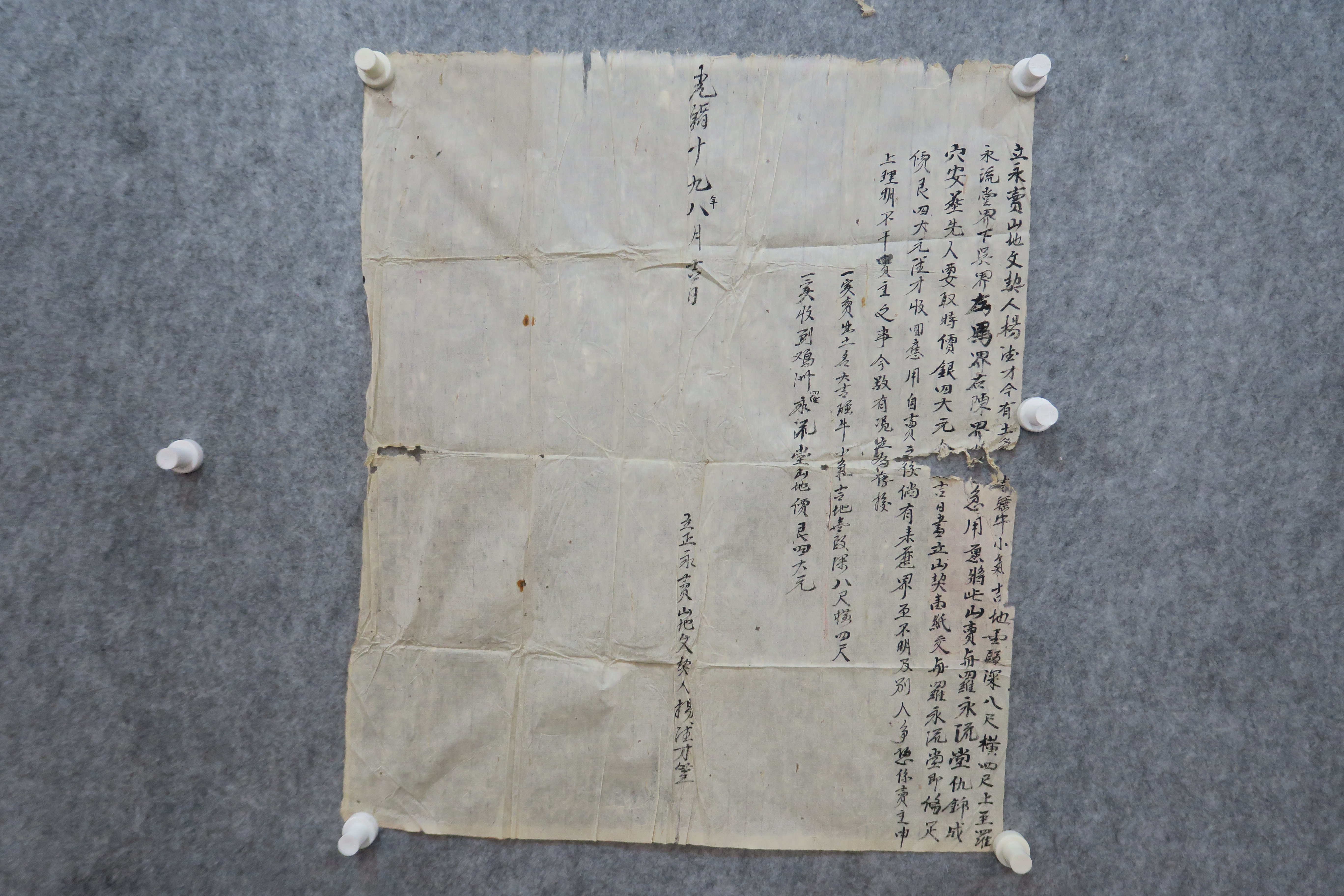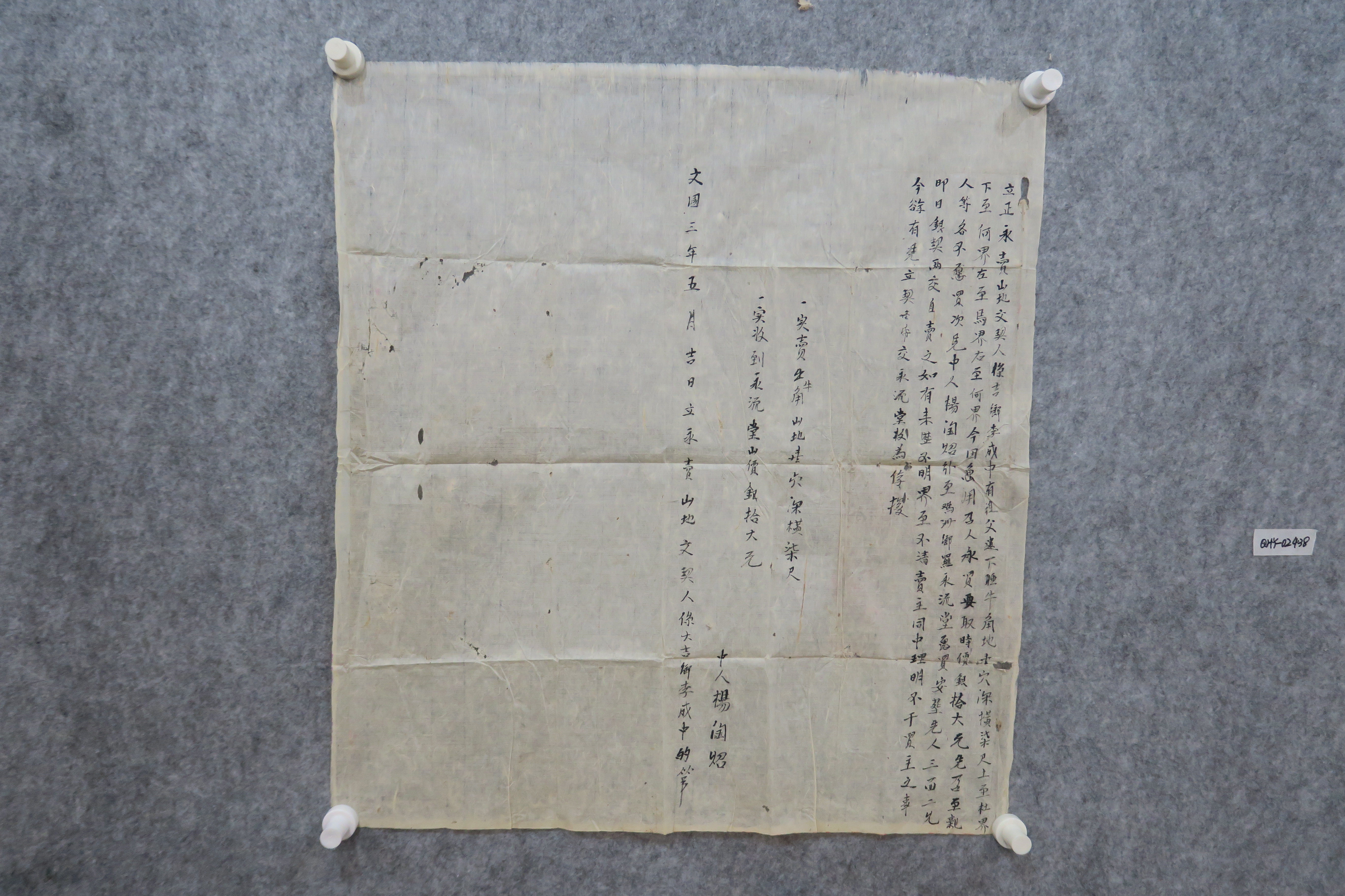 中华民国三年永卖睡牛角山地契纸