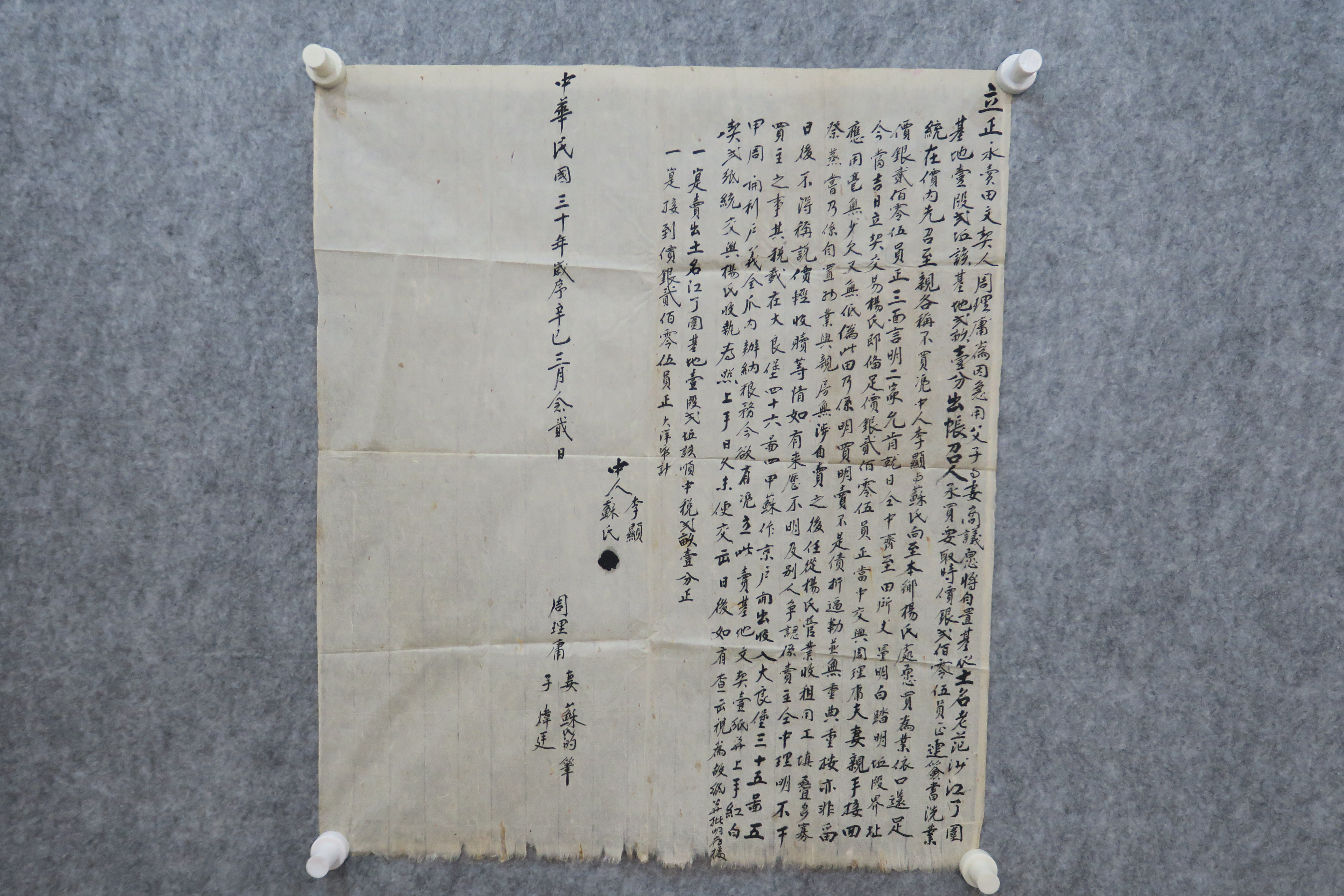 中华民国三十年永卖范沙江丫围基地田契纸