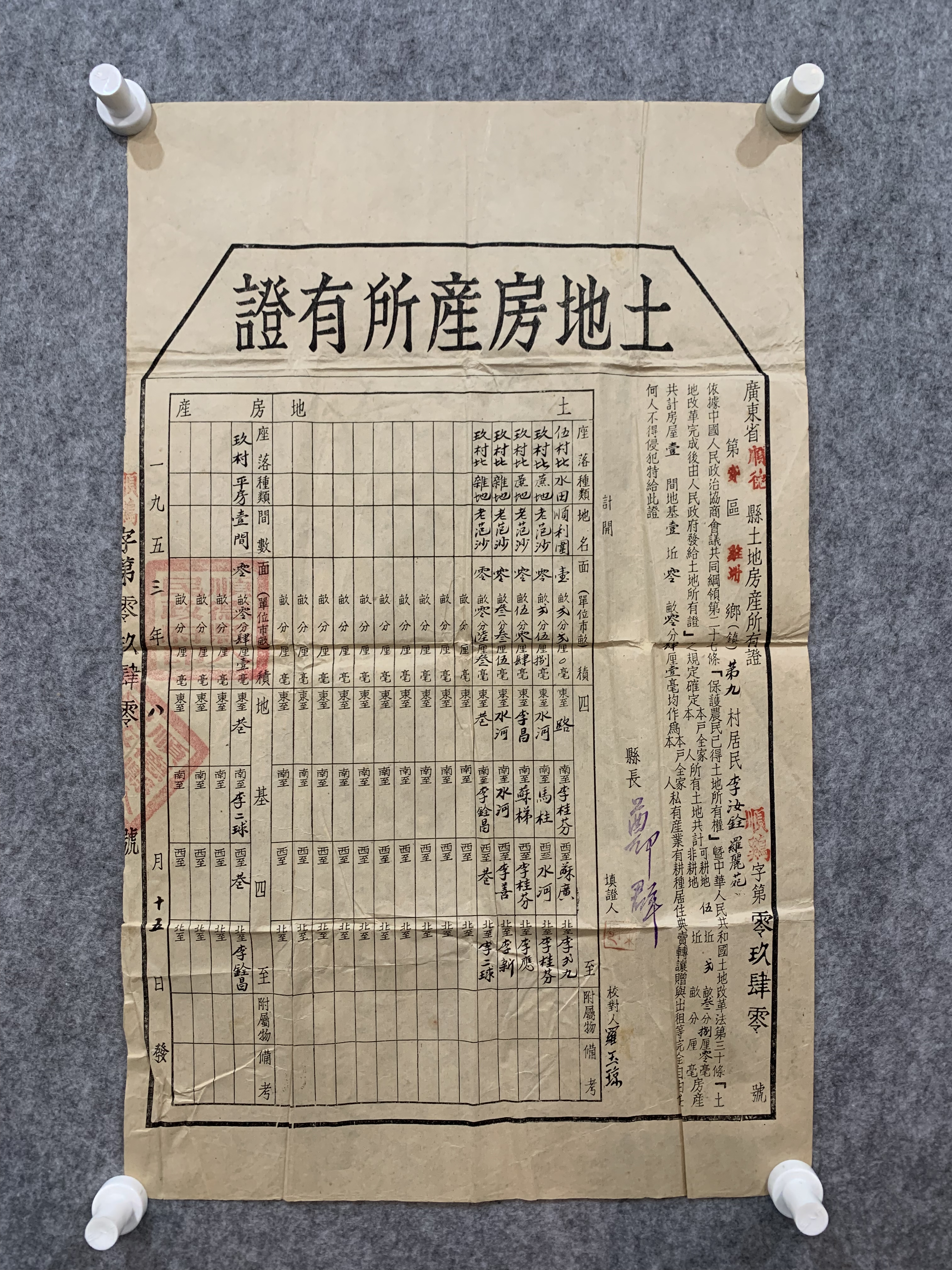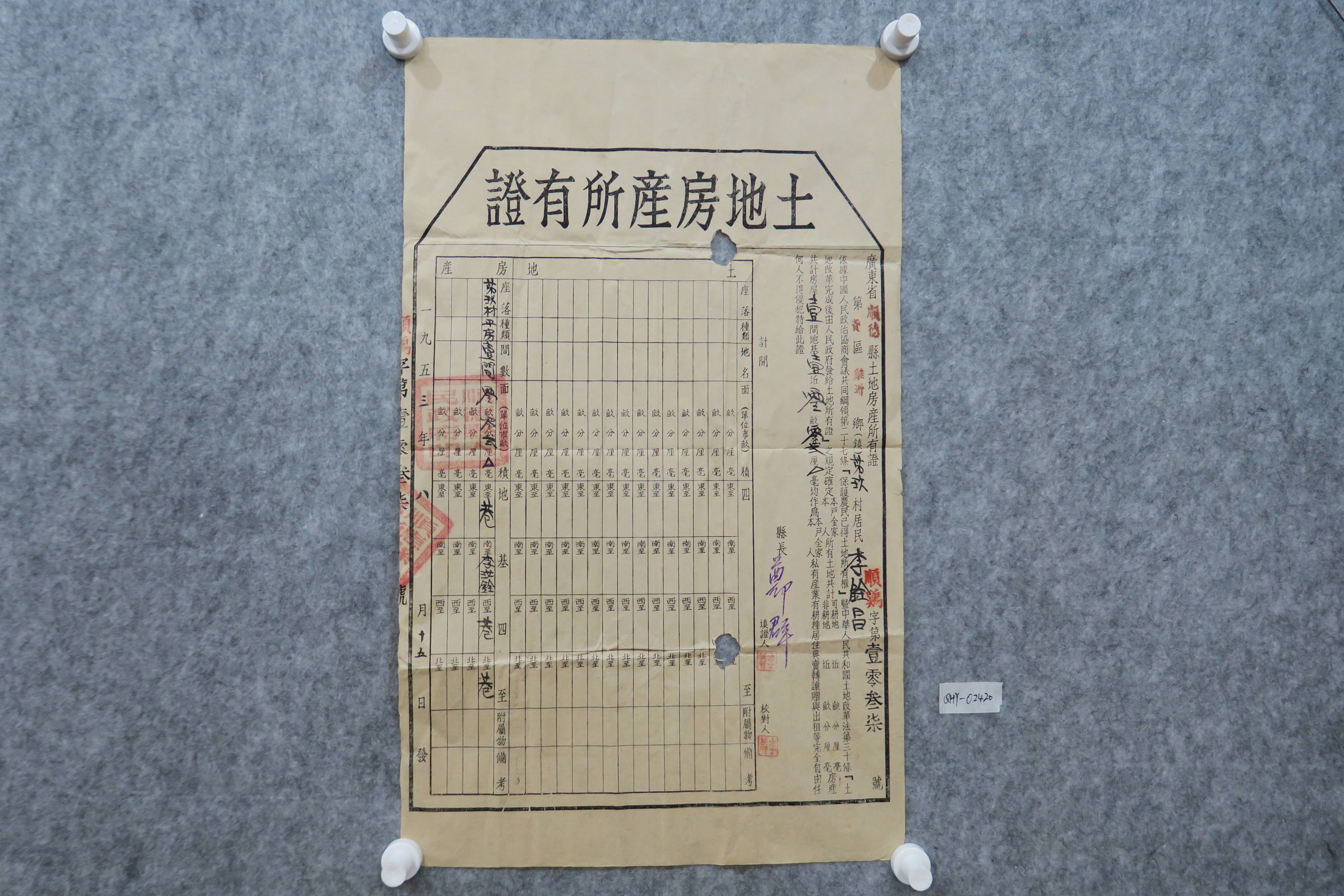 1953年土地房产所有证