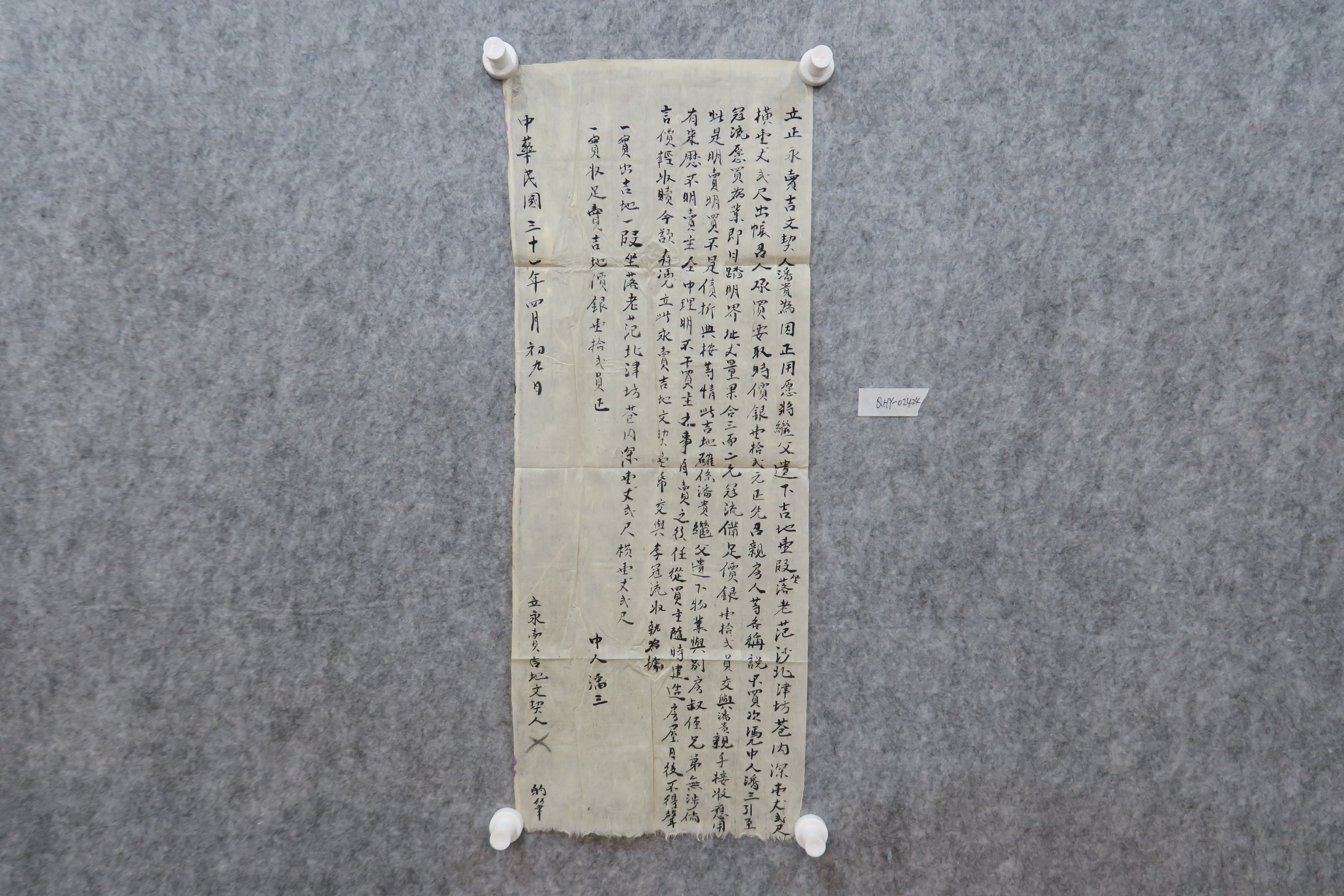 中华民国三十一年永卖范沙北津坊巷吉地契纸