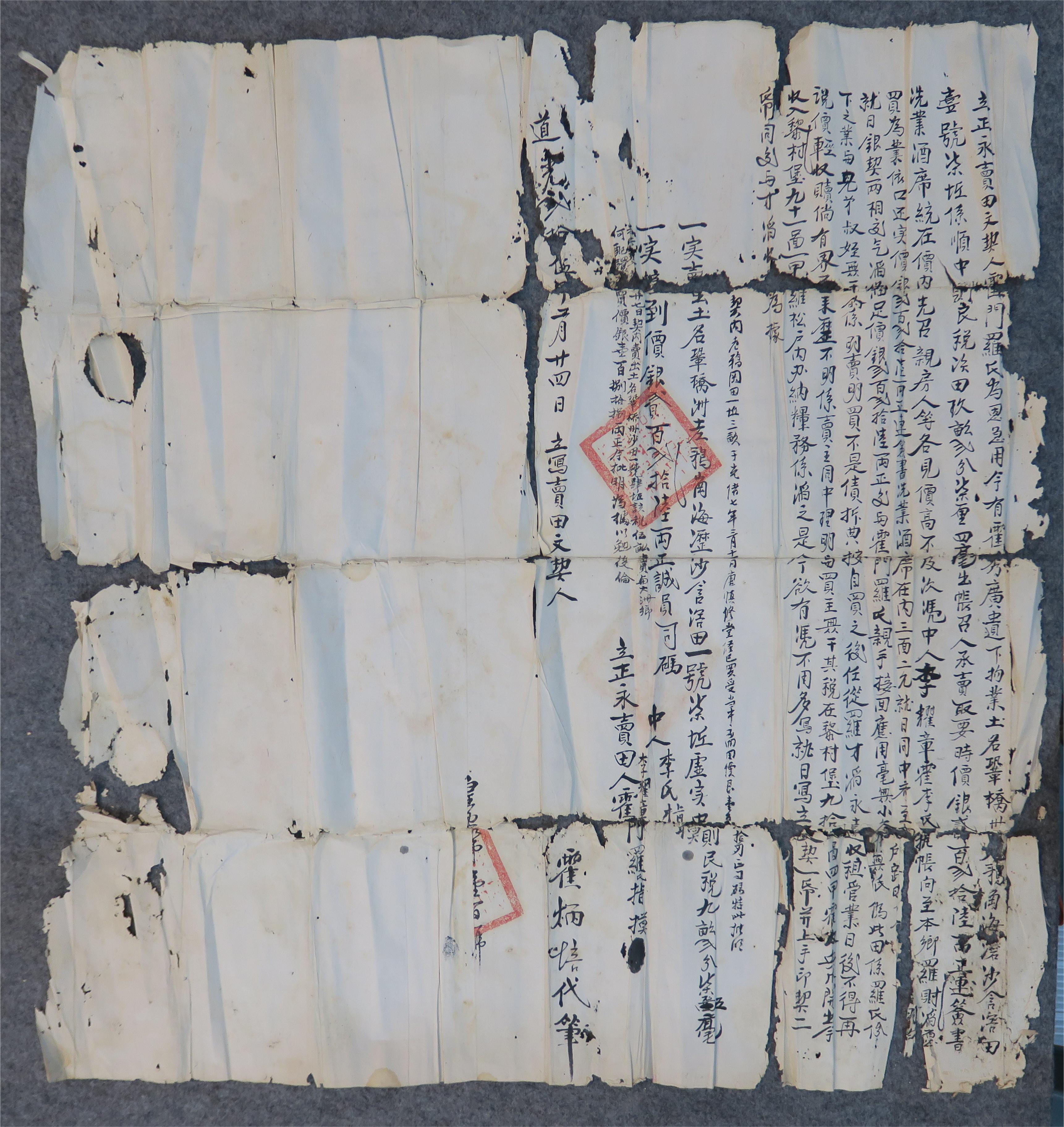 清道光二十五年永卖巩桥洲老鸦岗海沥沙田契纸