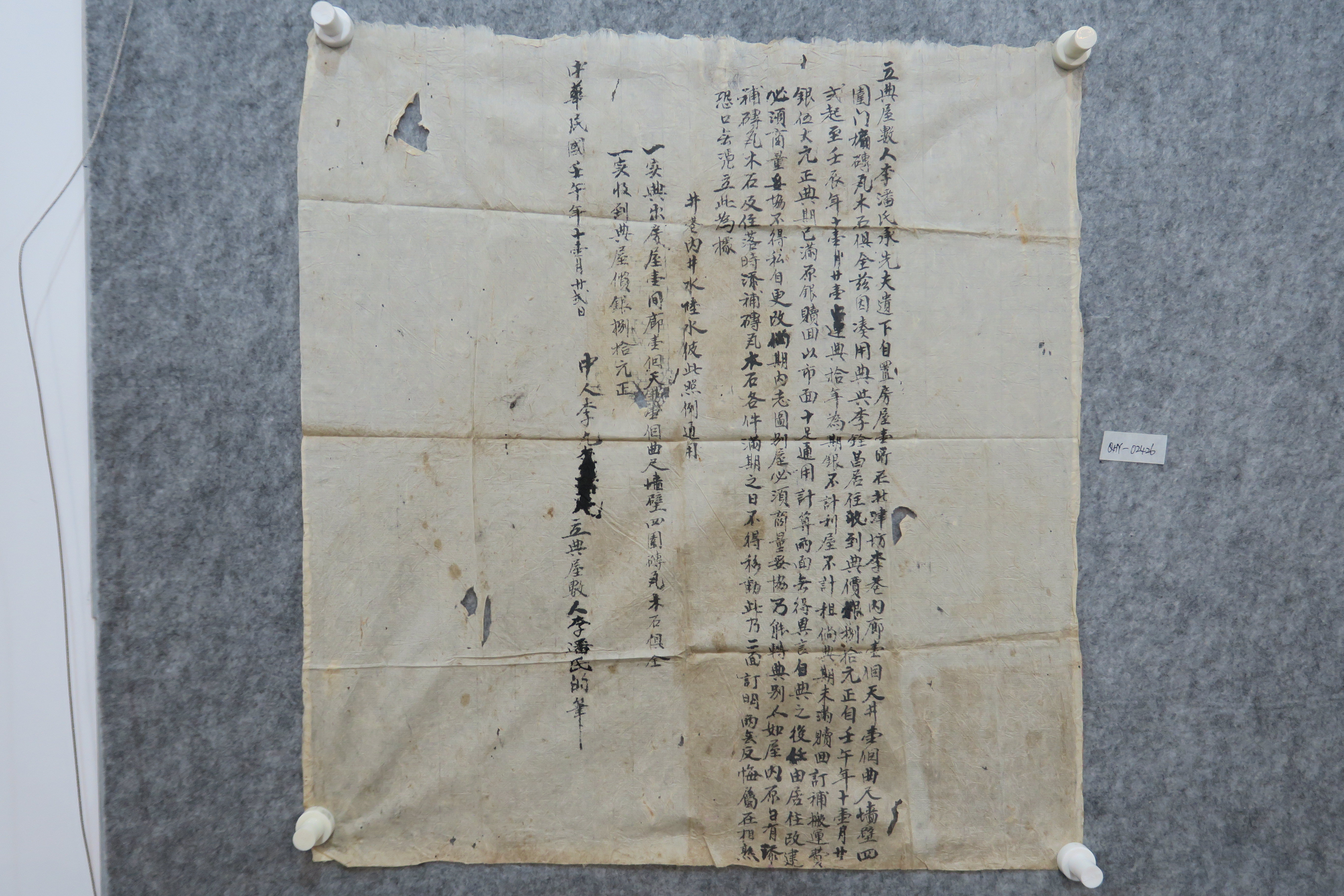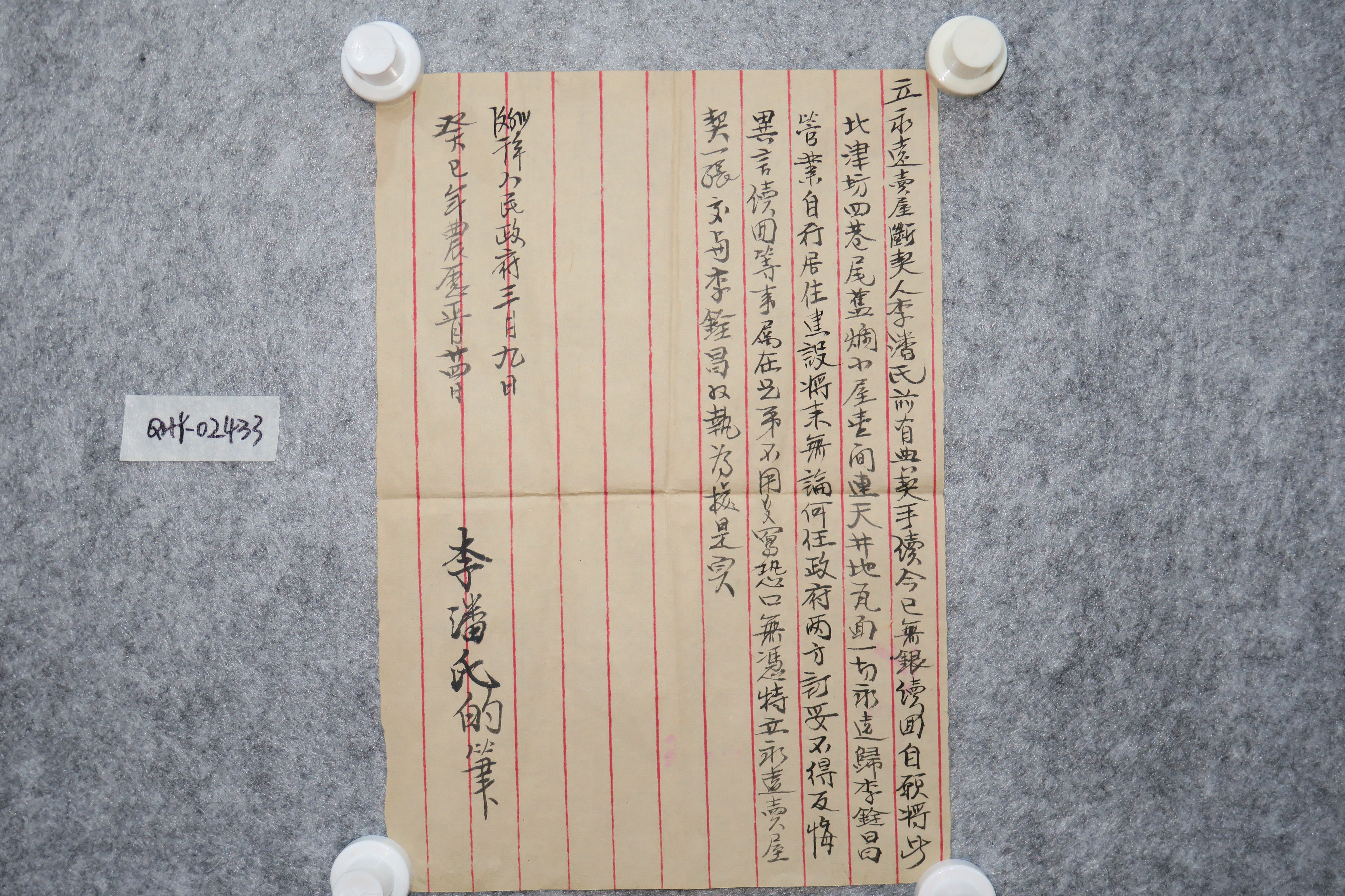 中华民国壬午年卖北津坊李巷房屋契纸