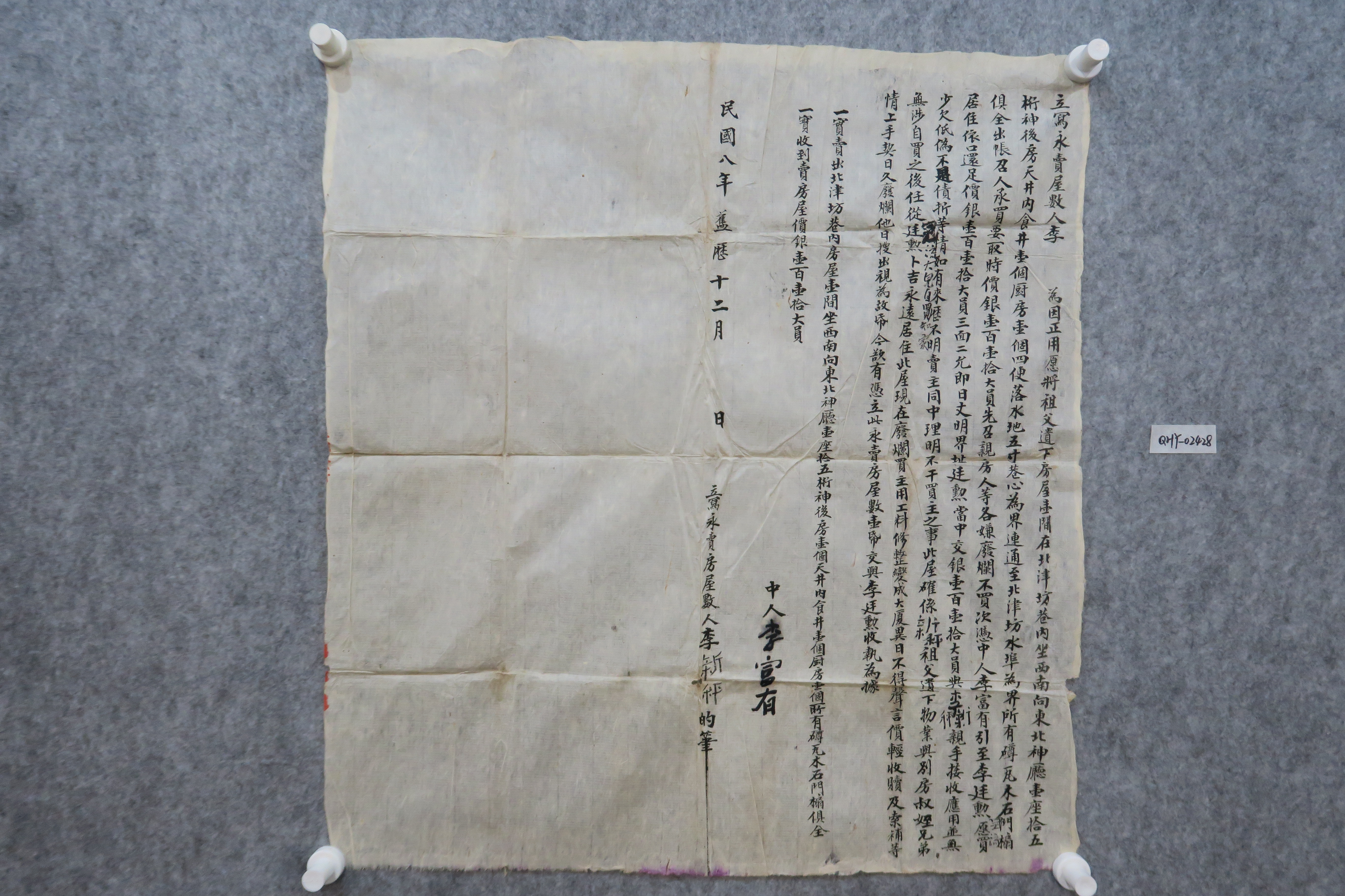 中华民国八年永卖北津坊巷内房屋契纸