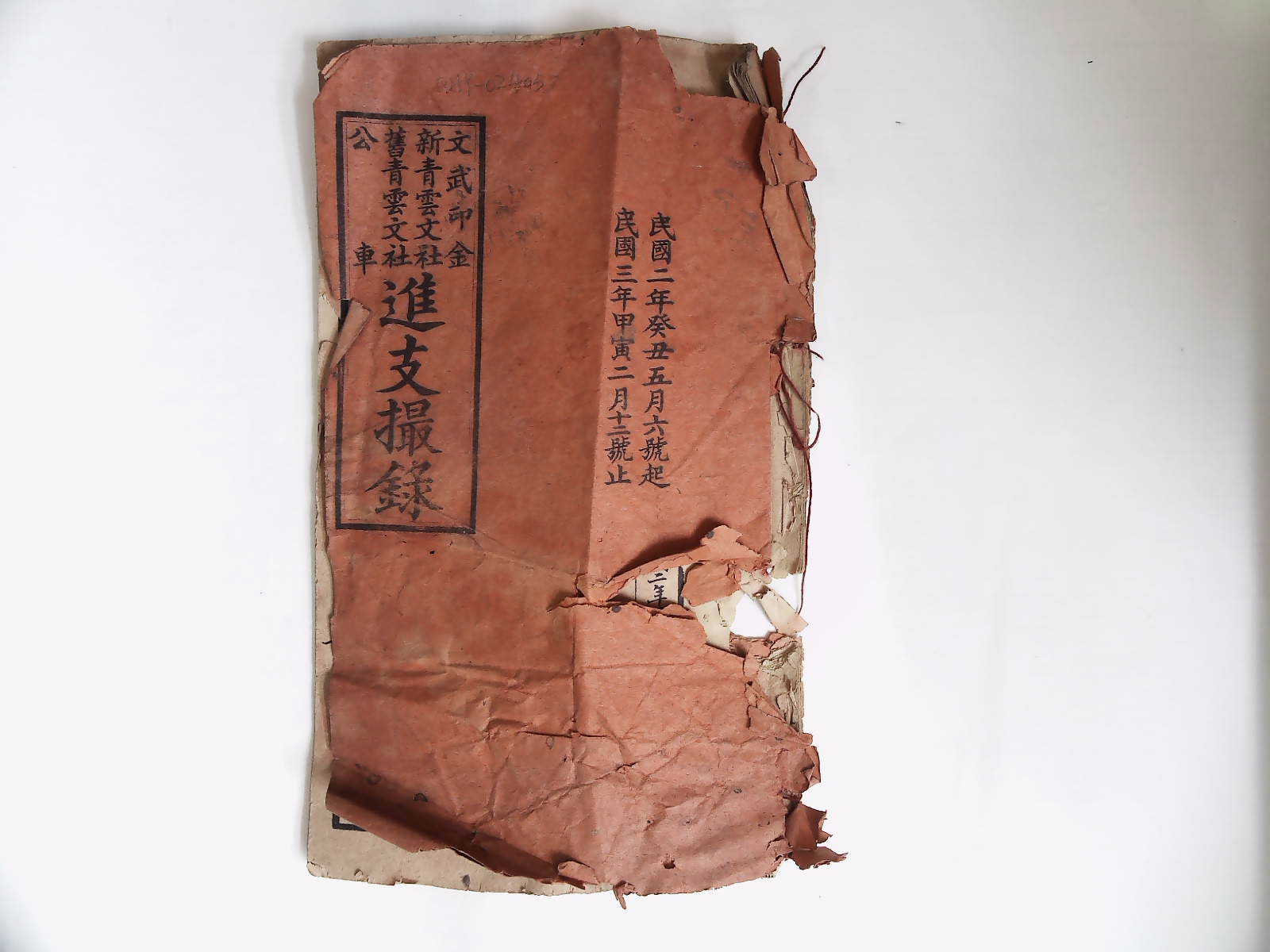 中华民国二年《新旧青云文社公车文武印金进支撮録》