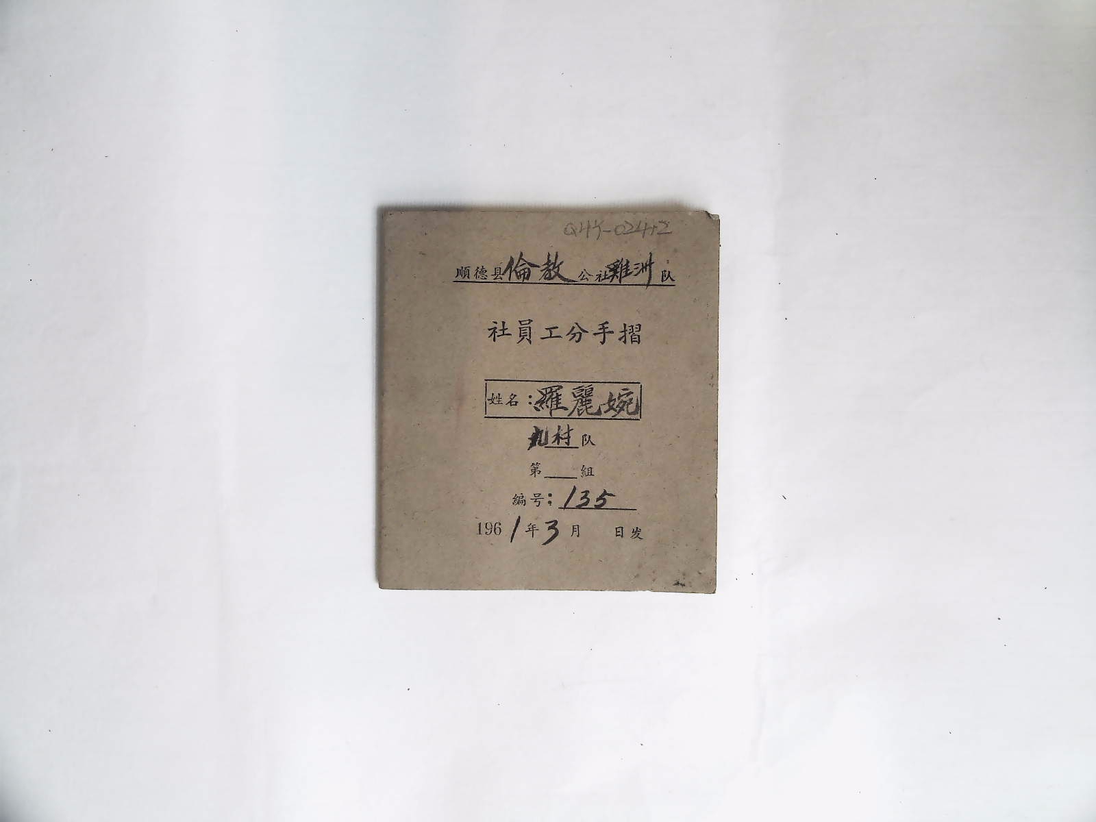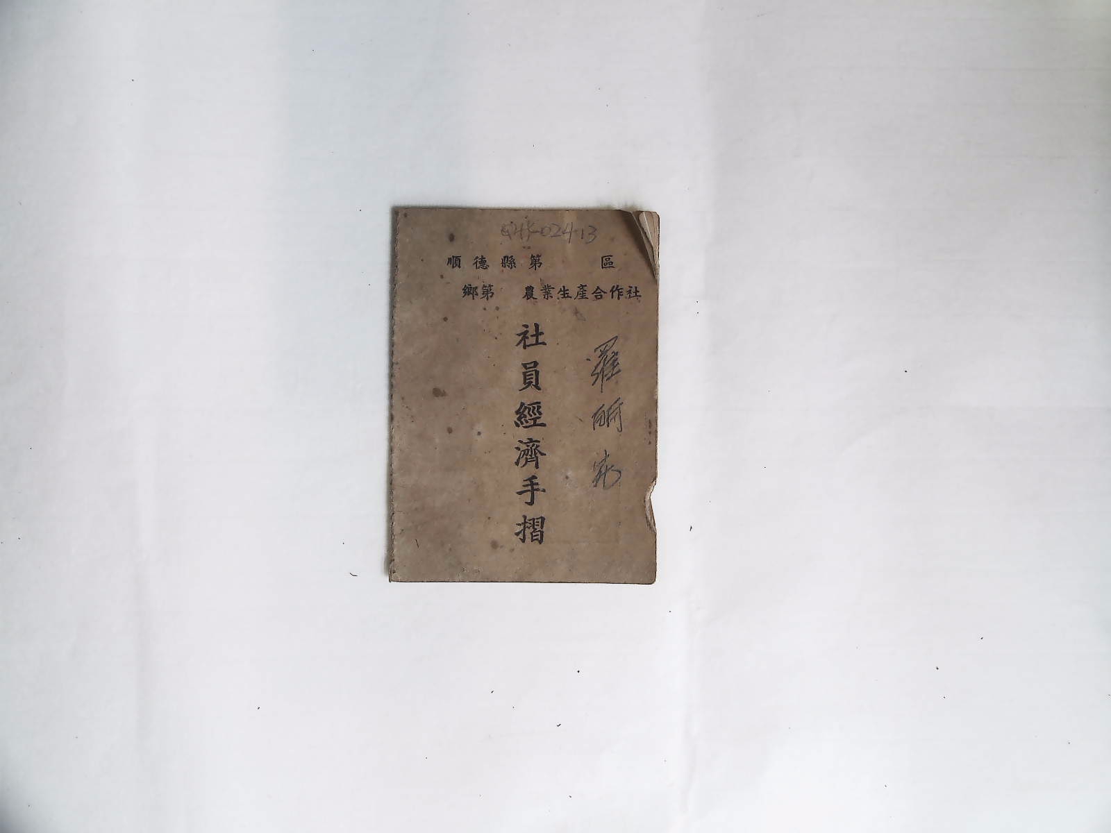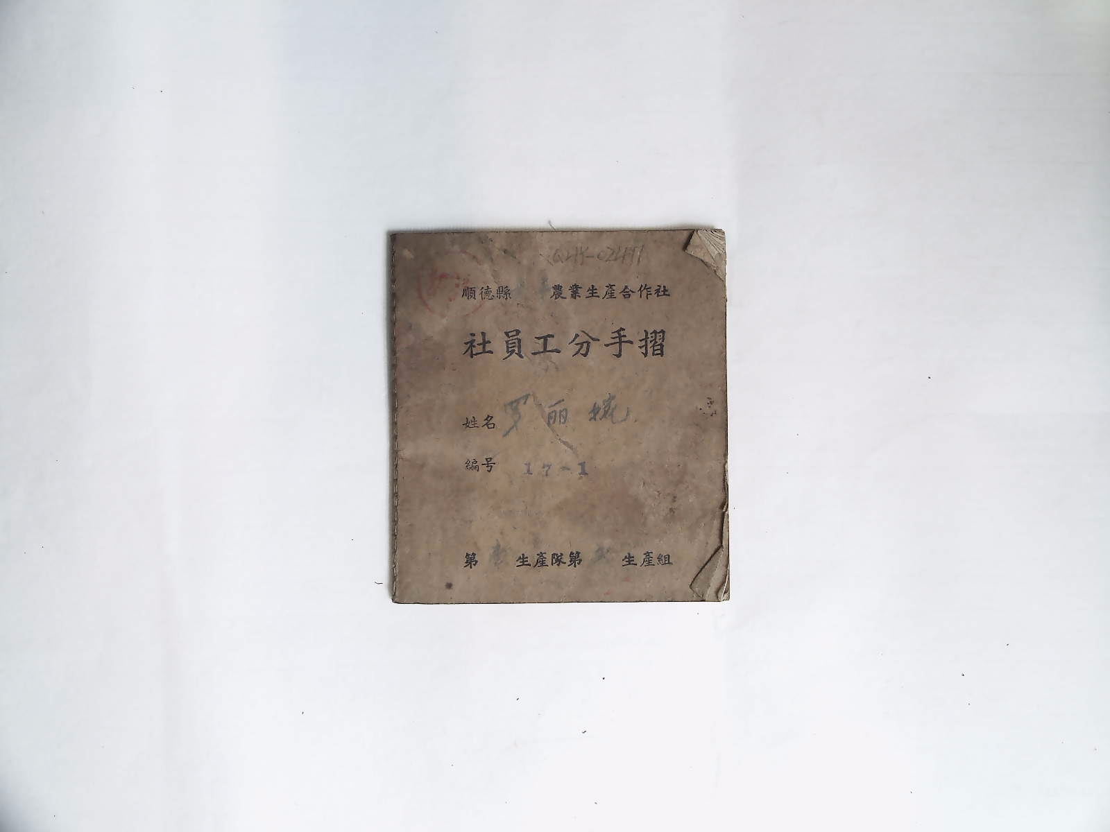 顺德县农业生产合作社《社员工分手摺》