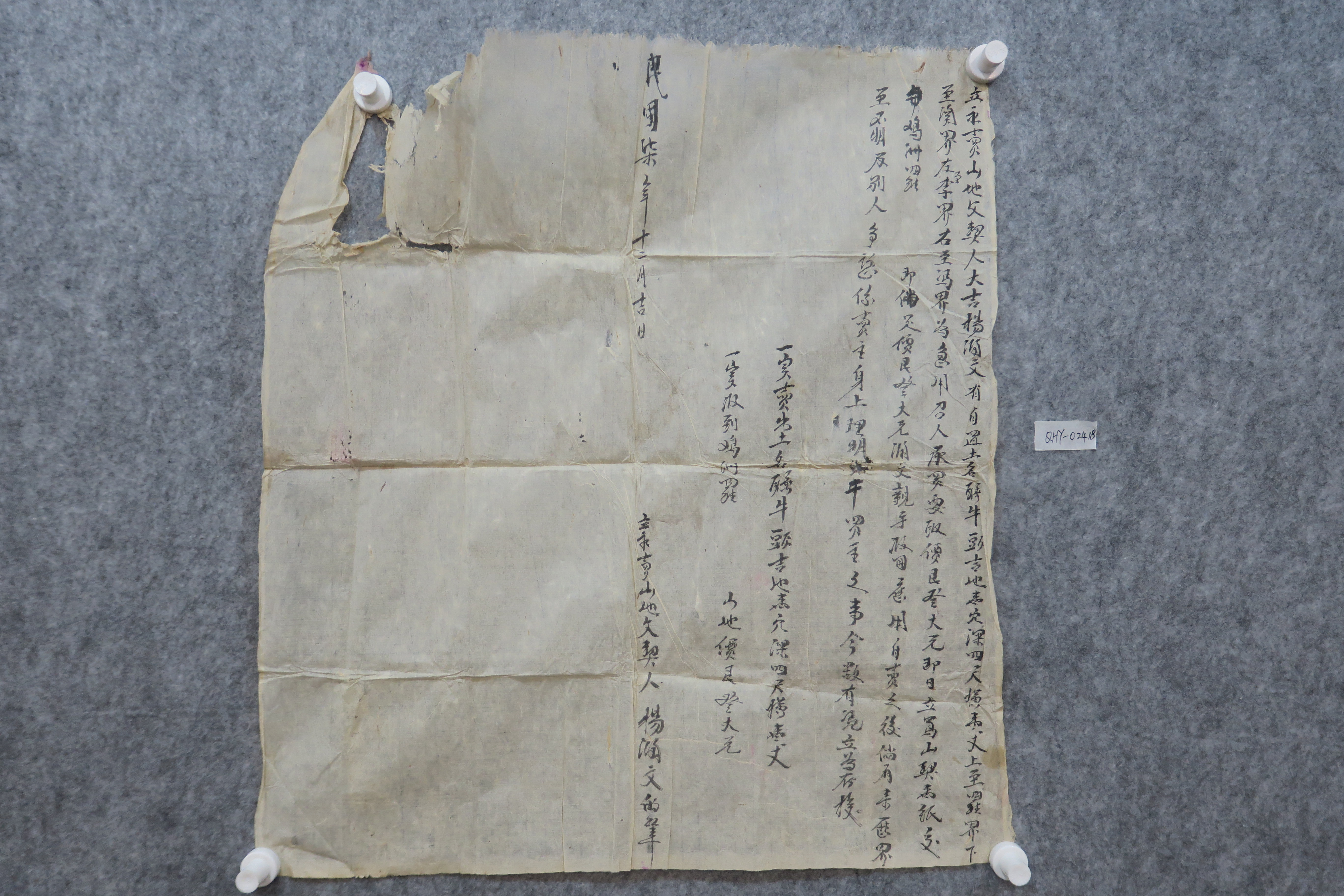 中华民国十年永卖睡牛口山地契纸